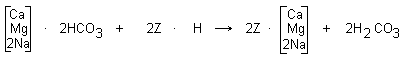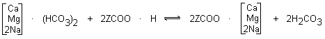 Weak acid cation exchange resins derive their exchange activity from a carboxylic group (-COOH). When operated in the hydrogen form, WAC resins remove cations that are associated with alkalinity, producing carbonic acid as shown: