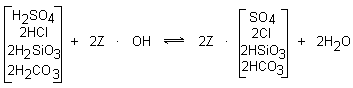 Weak functionality resins have a much higher regeneration efficiency than their strong function-ality counterparts. Weak acid cation resins, as described in the dealkalization section, exchange with cations associated with alkalinity. Weak base resins exchange with the mineral acid anions (SO4²¯, Cl¯, NO3¯) in a strong acid solution. The regeneration efficiency of weak resins is virtually stoichiometric, the removal of 1 kgr of ions (as CaCO3) requires only slightly more than 1 kgr of the regenerant ion (as CaCO3). Strong resins require three to four times the regenerant for the same contaminant removal.