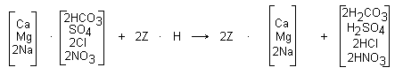 SAC resins derive their functionality from sulfonic acid groups (HSO3¯). When used in demineralization, SAC resins remove nearly all raw water cations, replacing them with hydrogen ions, as shown below: